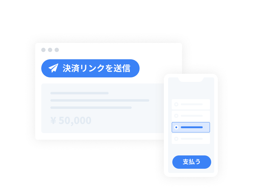 家賃や退去費用をクレカ・QR決済できるリンクで発行。入居者は24時間その場で支払えるため、銀行へ行く手間と滞納を防ぎます。